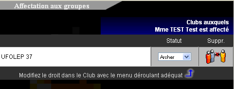 Indiquez le statut ( Archer ou dirigeant ) que vous voulez lui donner dans chacun des groupes ou il est inscrit.
