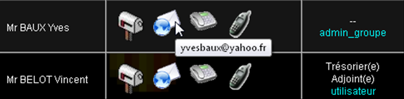 en passant le curseur de la souris sur les icones, vous découvrez les infos permettant de contacter les membres.