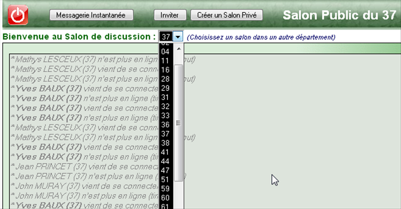 Pour entrer dans un salon d'un autre département, choisissez celui-ci dans la liste déroulante.