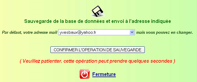 vous pouvez envoyer le fichier de données à une adresse mail de votre choix dans la liste.