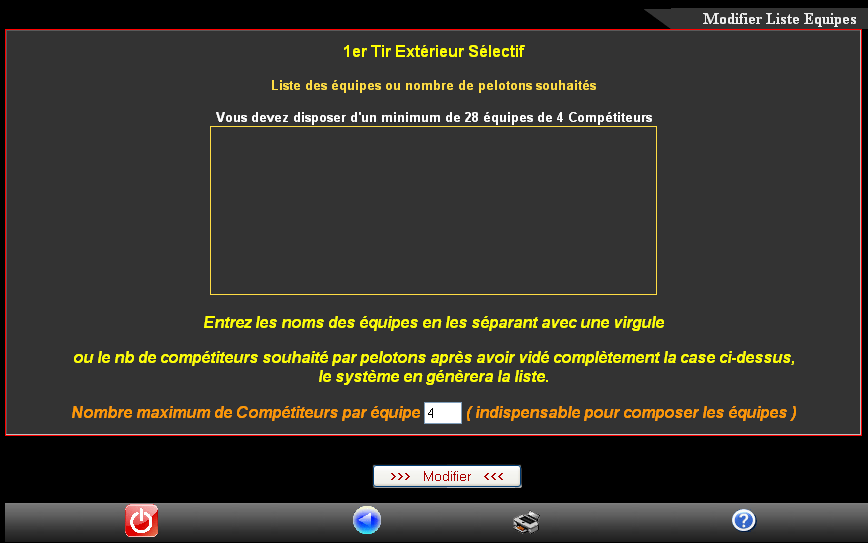 La deuxième option , vous entrez autant de noms d'équipes que nécessaire,