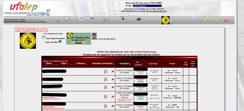 Un clic sur le nom de l'adhèrent donne accès à sa fiche