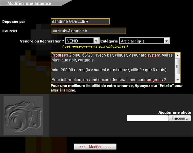 Si vous êtes l'auteur de l'annonce, vous pouvez la modifier ou la supprimer