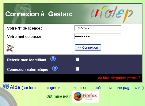 Lors de votre inscription, si vous possédez une adresse mail vous avez reçu votre identifiant (en principe votre N° de licence) et votre mot de passe .
