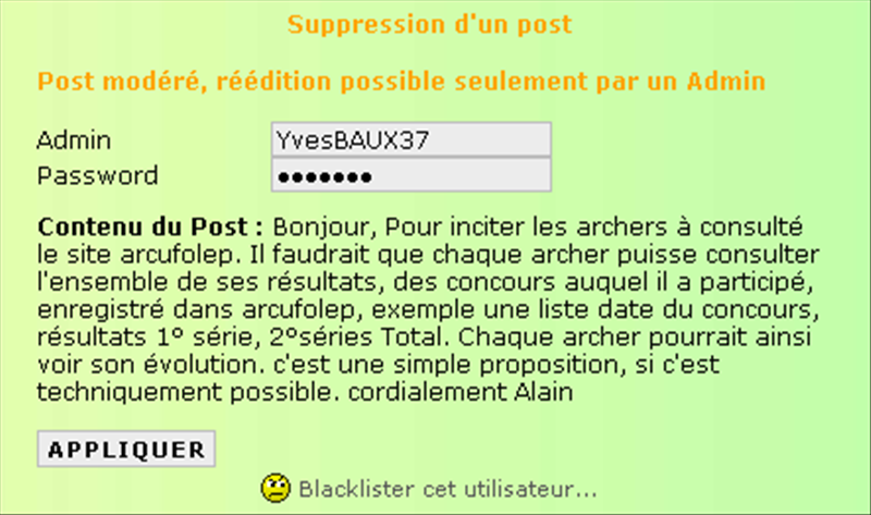 (seulement les sujets ou réponses dont vous êtes l'auteur)